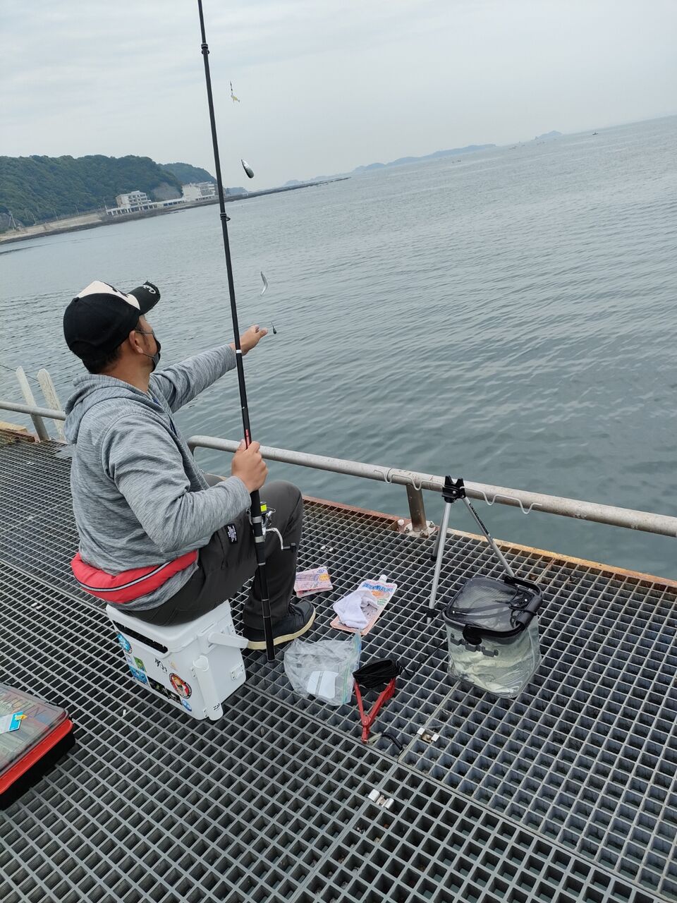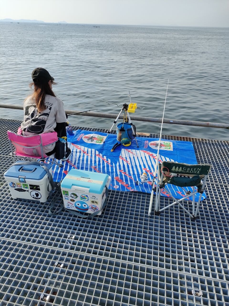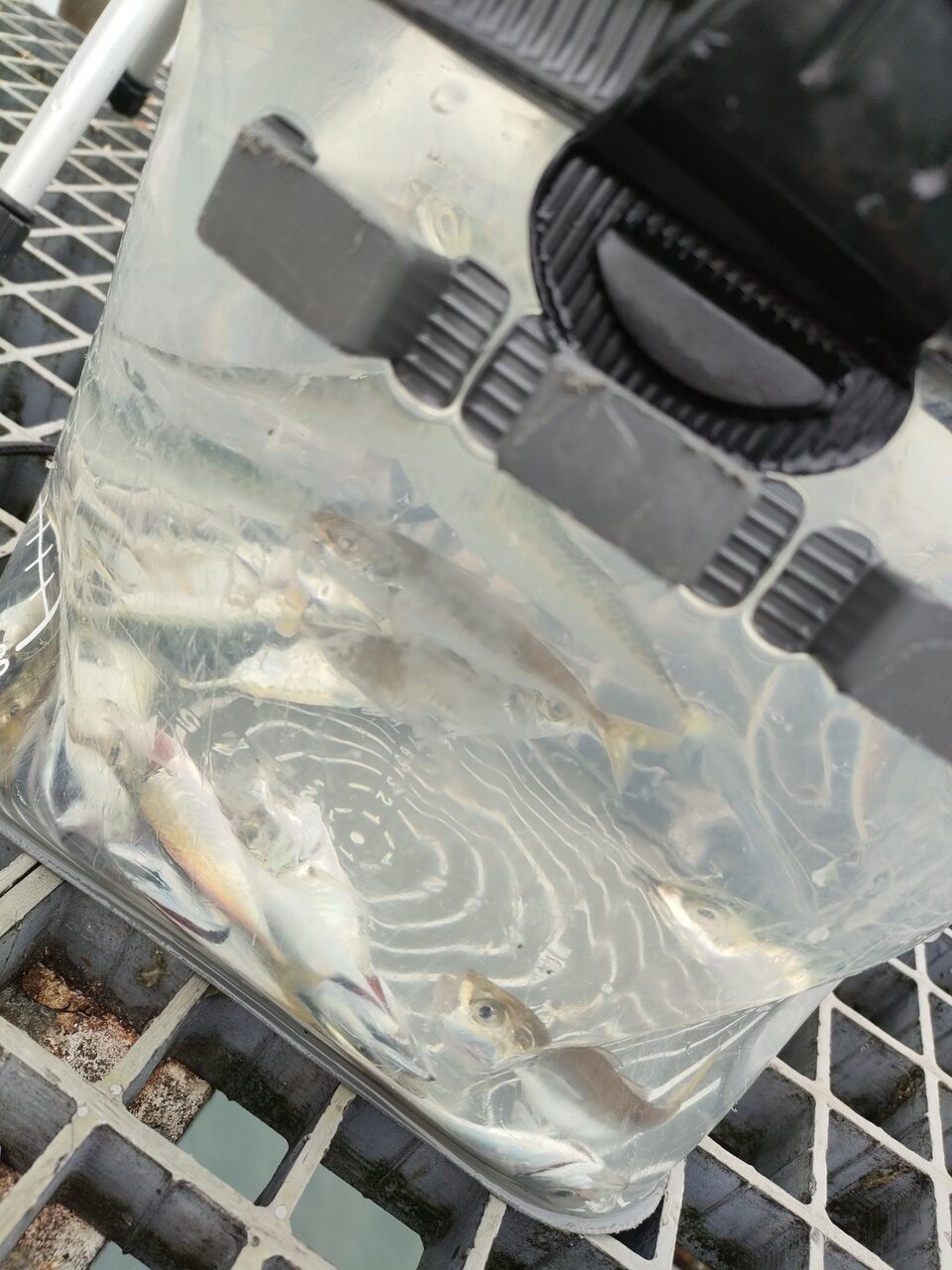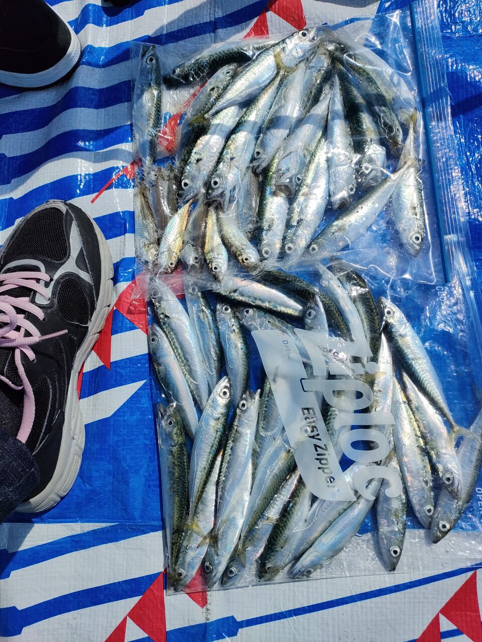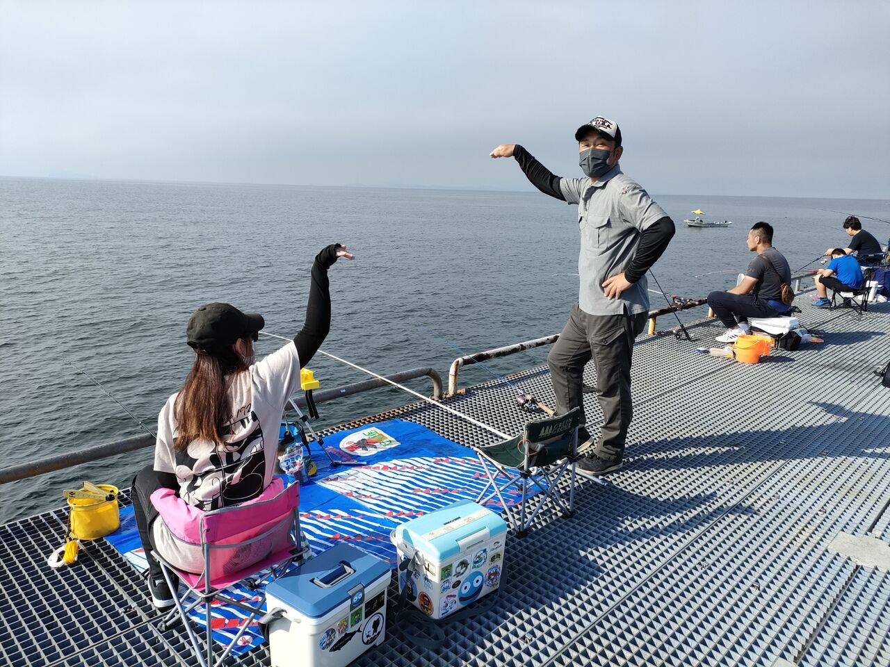 なんというか、周りが殆ど釣れてない中、異様なくらい豆アジ釣ってます!たまに隣に入れてもらって釣らせてもらいましたが、お姉さん程は釣れないです💦