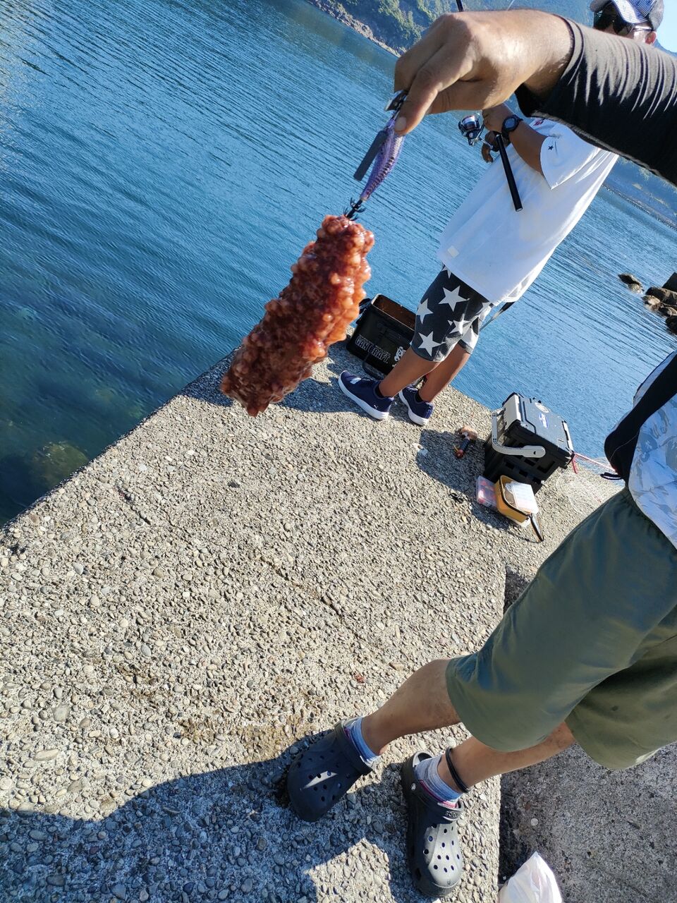 ウチらがジギングをしてる小堤防で一緒にやる事にしました
