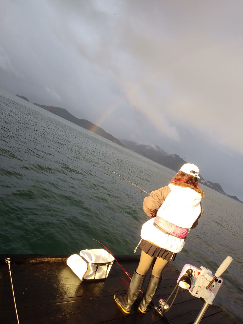 虹がでる中、